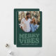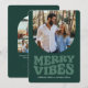 ¡Envíe estas divertidas vibraciones con esta divertida tarjeta de Navidades retro! Con un divertido tratamiento tipo "alegre vibración" en la parte delantera, esta tarjeta de foto de vacaciones también cuenta con una forma única de foto en arco. La parte trasera verde tiene espacio para tres fotos más y más texto personalizado. Haga de su tarjeta de vacaciones una experiencia única con este diseño elegante. También disponible en otros colores y como tarjeta de vacaciones descarga digital!