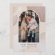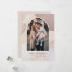 Envía Navidades a la familia y amigos con esta moderna y elegante tarjeta plana de fotos de Feliz Navidad. Tiene formas abstractas de color agua y beige con acentos purpurinas. Personalice esta tarjeta de Navidades suaves añadiendo su saludo de vacaciones, nombres y año.