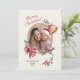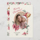 Los arcos y cintas rosas se combinan muy bien con las bellas campanas de Navidades dorados. Esta tarjeta de vacaciones plana presenta su propia foto fina en un marco ovalado adorable de acuarela vintage, incluyendo bayas y vegetación. Contiene el saludo de "Feliz Navidad", así como ejemplos "de" nombres y fechas. Asegúrese de editarlas al texto de su elección. El lado inverso de la tarjeta muestra el patrón completo.