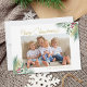 Esta elegante tarjeta de Navidades está decorada con un follaje acuático y bayas en rojo, verde y dorado. Personalizable fácil con tu nombre y foto. Acuarela original © Michele Davies.