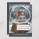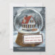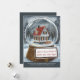 Tarjeta de navidades de la nueva dirección. Design presenta una casa en un globo de nieve gigante en un bosque nevado con un símbolo de jardín editable para su saludo de vacaciones. El cartel actualmente dice "navidades desean de nuestras nuevas excavaciones" y usted puede editar esto si lo desea. También hay un panel de texto personalizado en la parte inferior para que todos sepan su cambio de dirección.