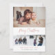 Tarjetas fotográficas de Feliz Navidad de color rosa personalizado con tres fotos con un título con letras a mano en el frente y fondo rosa pastel con nieve en caída y estrellas en la parte posterior. Personaliza fácilmente estas tarjetas de foto navideñas con guiones rosas con tus imágenes, un nombre familiar y el año.