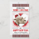 ¡Esta es una linda idea para la familia de los inversores! Un par de cabras se vistieron todas para las vacaciones con un sombrero de santa y enmarcadas dentro de un copo de nieve cubierto de armazón de corazón, se acurrucaron y se amordazaron mutuamente con cariño. El texto rojo brillante y negro audaz desea a sus amigos, familia o clientes una Feliz Navidad y un feliz año nuevo con la diversión básica escritura de estilo de escritura de bloques de san serif y un área de texto personalizada para sus nombres. No tiene nada de extraordinario, es de estilo moderno. Las rayas clásicas en negro, blanco y rojo completan el diseño superior e inferior.