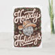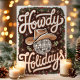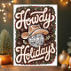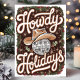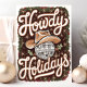 Añada un toque único a sus saludos de vacaciones con esta tarjeta "Howdy Holidays", que incluye un gorra de vaqueros y un diseño de bola de disco. Perfecto para los aficionados del oeste del país y para los amantes de las vacaciones retro, esta tarjeta combina estilo vaquero clásico con alegría festiva. Comparta un memorable y divertido saludo de vacaciones con la familia y amigos que aprecian un toque de encanto occidental.