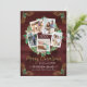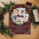 "Navidades de la guirnalda de una granja fotografíen Tarjeta de vacaciones Rústica de la Madera de Borgoña". Corazón de agua de conos de pino, vegetación de hojaldre y abeto sobre un fondo de madera de color burdeos de vino tinto profundo con escritura purpurina dorada, "Feliz Navidad" y tu mensaje familiar personalizado en encantadora tipografía de escritura caligráfica. Modernos copos de nieve dibujados a mano blanca en el reverso. Todo el arte del artista y diseñador con licencia internacional, Audrey Jeanne Roberts, copyright.