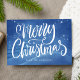 Deslumbrar a todos en su lista de tarjetas de Navidades con nuestras elegantes tarjetas de vacaciones Snowy Winter Watercolor. La tarjeta navideña sin foto muestra "Feliz Navidad" en el frente con un guión blanco y con letras a mano con una hermosa escena de invierno con árboles y colinas cubiertas de nieve, copos de nieve en caída y fondo de color azul. Personalice la parte delantera de la tarjeta agregando su nombre o texto personalizado. La parte posterior de la tarjeta de vacaciones incluye el mensaje de su personalizado o deja en blanco para escribir a mano el suyo propio. Diseñado para coordinar con nuestra colección de tarjetas Snowy Winter Navidades.