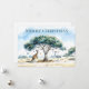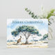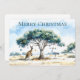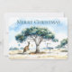 Un canguro Navidad y una Emu sentados bajo un árbol de goma adornado con baudias. Feliz saludo de Navidad al frente Feliz Navidad y Feliz Año Nuevo dentro