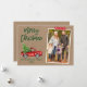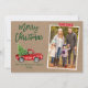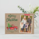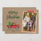 Camión Rojo Vintage con color de agua de pincel moderno con tarjeta navideña de festividad de la familia navideña - Papel de Kraft rústico, cinta de nata de copo de nieve roja