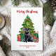¡Envíe un saludo festivo con esta encantadora tarjeta de vacaciones de gato negro! Un árbol de Navidad decorado con adornos, arcos y regalos envueltos es el telón de fondo perfecto para un hermoso ilustracion de gato color agua. Personalice la parte delantera con el nombre de su familia, el nombre de su gato y el año, mientras que la parte posterior muestra un divertido patrón de huellas de pata roja. Una forma maravillosa para los amantes del gato y los padres mascotas de compartir saludos de vacaciones con amigos y familia.