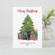 ¡Envíe un saludo festivo con esta encantadora tarjeta de vacaciones de gato negro! Un árbol de Navidad decorado con adornos, arcos y regalos envueltos es el telón de fondo perfecto para un hermoso ilustracion de gato color agua. Personalice la parte delantera con el nombre de su familia, el nombre de su gato y el año, mientras que la parte posterior muestra un divertido patrón de huellas de pata roja. Una forma maravillosa para los amantes del gato y los padres mascotas de compartir saludos de vacaciones con amigos y familia.