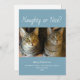 Navidades traviesos o bonitos, tarjeta de saludo azul pálido con un lindo diseño de fotos de gatos tabby. Con letras de tipografía de personalizable, añades tu propia información. Una forma divertida de enviar saludos de vacaciones a la familia y a los seres queridos.