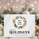 Comparte la alegría de la temporada con nuestra moderna tarjeta de vacaciones "Happy Holiday Card" para Navidades de la corona de oro negro. Esta sofisticada tarjeta es la manera perfecta de mostrar aprecio a sus empleados, clientes y clientes durante las vacaciones. El diseño moderno y moderno de la moda, con una corona negra y dorada, desprende un cierto estilo y clase. Personalizar la tarjeta con el logotipo de su empresa y datos de contacto para crear un toque memorable y profesional.