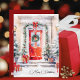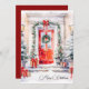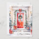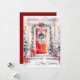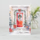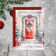 Envíe un saludo bellamente nostálgico esta temporada navideña con esta tarjeta de Navidades acuáticos. Con una escena clásica de una puerta delantera con polvo de nieve, una puerta de color rojo brillante, un verde jardín exuberante y una corona festiva, este diseño es el epítome del encanto clásico de las vacaciones. El arte acuarela crea una imagen memorable, y con un fondo rojo y un texto de personalizable al revés, puedes diseñar el mensaje perfecto para tus queridos amigos y familia.