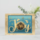 La tarjeta de vacaciones "JOY" Navidades de Silhouette de oro moderno celebra la alegría de los Navidades con esta increíblemente única y elegante tarjeta de vacaciones, un diseño original por ti! Esta tarjeta integra brillantemente la escena de la Natividad dentro de la letra "O" de la palabra "JOY", creando un visual poderoso y significativo. La silueta de María, José y el niño Jesús en el pesebre se coloca contra un cielo sereno verde azulado y dorado gradiente, que evoca la magia de la noche santa. Dos ángeles soplando trompetas flanquean las letras "J" e "Y", con los Navidades guía arriba, todo dentro del panel verde azulado central. Este panel está enmarcado por un rico fondo de mármol dorado con sutiles acentos espumosos, que le dan un toque de lujo moderno y de alegría festiva. Delicados copos de nieve y estrellas se reparten por todas partes, lo que realza el tema de las vacaciones de invierno. Esta tarjeta es perfecta para aquellos que quieran enviar un mensaje de Navidades religiosos con un toque contemporáneo y artístico. Combina maravillosamente el significado tradicional con un diseño sofisticado y llamativo.