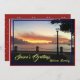 Dé una tarjeta de vacaciones a los Navidades de la temporada de saludos a la familia y amigos con una hermosa y atractiva puesta de sol. Esta fotografía fue tomada en Frederiksted St. Croix Virgin Islands por ©Denise Bennerson, fotógrafa. Disfruta de las vistas. Puede personalizar el mensaje y el nombre.