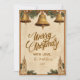 Celebre la temporada con un estilo atemporal con este elegante diseño fiesta Navidad con campanas doradas, vegetación de pinos y un marco vintage. Los cálidos tonos dorados, combinados con acentos festivos de invierno, crean una estética de vacaciones lujosa y acogedora. Perfecto para acoger a Navidades reunidos con un toque de tradición y sofisticación. Personalice con sus detalles del evento para una celebración memorable.