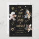 Hermosa tarjeta única de vacaciones con temática de cocción familiar. Nuestro diseño incluye divertidos cuadros de fotos de Navidades cortados por cookies para mostrar 3 de sus recuerdos de fotos familiares favoritos. "Love Joy & infinidad de cookies" está diseñado en un estilo de letra de un guión moderno. Iconos con temática de pastelería divertida: tazón mixto, galleta, whisky, pan de jengibre, gorra de chef y cuchara están repartidos por todos lados. En el reverso se aprecia una estampación de oro fino y brillante. Todos los ilustraciones son obras de arte dibujadas a mano por Moodthology Papery.