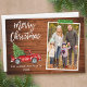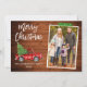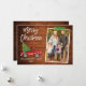 Camión Rojo Vintage con color de agua estilo Brush moderno con árbol de navidad Tarjeta de vacaciones de la familia navideña - Madera rústica de campo, Cinta de nevadas verdes