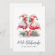 Celebre las vacaciones con un toque de los trópicos con esta encantadora impresión de dos flamencos rosados con sombreros de Santa y de pie junto a regalos de Navidad. Ya sea que vivas en un área costera como Florida, Hawái, Bahamas, o simplemente te guste el ambiente de la playa, esta divertida y chica impresión es perfecta para ti. La acuarela tiene un estilo rústico y angustiado. La mezcla de tipos de letra simples y tipografía de guiones agrega un toque casual pero elegante. Con un diseño encantador, la decoración de los Navidades aporta un toque tropical, divertido y de playa. acuarela Tropical Beach Santa Hat Flamingo rosa Mele Kalikimaka Navidad Tarjeta de vacaciones. Disponible como tarjeta impresa o como tarjeta digital descargable que puede enviar por correo electrónico o imprimir localmente.