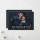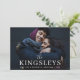 Una elegante y moderna tarjeta de felicitación fotográfica de vacaciones con tu apellido, que aparece en la tipografía clásica acompañada de escritura a mano en blanco sobre una fotografía de tamaño completo. Su foto especial se verá magnífica en este diseño único, audaz y mínimo. El diseño presenta un magnífico color negro oscuro en el reverso y el espacio para dejar un mensaje personal opcional para tus amigos y familia. ¡Un diseño mínimo sorprendente para destacar entre la multitud esta temporada de navidades! La imagen que se muestra es para fines de ilustracion y sólo se sustituye por la suya. La imagen de marcador de posición es de una hermosa pareja joven feliz abrazándose entre sí.