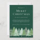 Tarjeta de navidad corporativa de Feliz Navidad acuarela Snowy Woodland Pine Forest Design Comparta los cálidos deseos de vacaciones con los clientes, colegas y socios de negocios con esta plantilla de tarjeta plana de Navidades corporativos que incluye obras de arte originales de acuarela de la artista Catherine Sweetman. El elegante diseño presenta un bosque de pinos de bosque nevado y un bosque de abetos emparejados con una tipografía moderna en blanco crujiente sobre un fondo verde esmeralda profundo, creando un aspecto profesional y festivo. Personalice el nombre, el mensaje o el saludo estacional de su empresa para que sea verdaderamente único. El formato de tarjeta plana es ideal para los saludos corporativos de vacaciones, ofreciendo un equilibrio de estilo profesional y encanto de temporada. Perfecto para empresas que buscan enviar un mensaje de vacaciones reflexivo y elegante, este personalizable de Navidades corporativos de tarjetas combina el arte con el diseño moderno para una manera memorable de conectarse durante la temporada festiva.