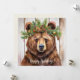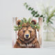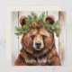 Esta tarjeta de felicitaciones vacacionales plana cuenta con un oso acuarela adornado con una corona de boughs. El texto "¡Felices Fiestas!" puede ser editado y la parte posterior es una crema simple donde se puede escribir un mensaje personalizado.