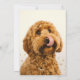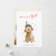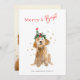 Envíe sus alegres deseos de vacaciones con esta tarjeta de Navidades "Merry & Bright" que incluye un perro doodle de color de agua que usa un sombrero de Santa rayas y una corona de mistletoe. Rodeado de acentos dorados y con un suave fondo blanco, este alegre diseño es perfecto para los amantes de las mascotas que quieran compartir la calidez, el capricho y las colas de la temporada.