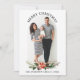 Moderna y moderna Rustic Black & White Buffalo Plaid Photo Arch Merry Christmas Card incluye acuarela Poinsettia Floral con pinos y vegetación de invierno.