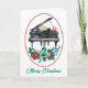 Tarjeta de saludo de Navidades de profesores de música, con acuarela de un piano de cola negro y flores de vacaciones. texto personalizado, dentro está listo para personalizar para leer lo que quieras.