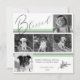 Esta tarjeta de Navidades cuenta con una rama de pino con diseño de pinecones y colores verdes y grises modernos. La palabra "Bendito" está escrita en la parte superior en caligrafía y la tarjeta incluye espacio para 5 de tus fotos favoritas de ti y tu familia del año pasado, así como la capacidad de cambiar el saludo por encima de tu nombre y año. La parte posterior de la tarjeta proporciona espacio para una carta o mensaje personal junto con una imagen de la masa de pino acuarela que aparece en la parte delantera. ¡Feliz Navidad y todo lo mejor en Año Nuevo!