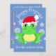 Tarjeta Festiva Navidades de rana verde lindo Santa Hat Personaliz