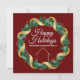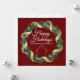 Esta hermosa tarjeta de Navidades inmobiliarios está hecha personalizado con el nombre de tu compañía de propiedades bajo el nombre del agente en tipografía verde y roja de moda dentro de una flor de berry festiva con guirnaldas doradas que envuelven alrededor de la vegetación. Tarjetas de vacaciones contemporáneas para marketing de agentes este invierno.