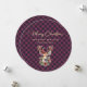 Tarjeta de vacaciones personalizado morada y dorada de manteca de búfalo que incluye un saludo de vacaciones de guion dorado y un reno sobre un fondo de manto morado de búfalo. Personaliza fácilmente esta tarjeta de vacaciones morada y dorada con tu apellido y un texto. El efecto Relieve metalizado dorado sólo se simula en las obras de arte.