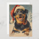 ¡Te deseo una temporada festiva llena de alegría y calor! Esta tarjeta de Navidades incluye un adorable Rottweiler, que se pone un sombrero Santa con una mancha en el ojo. El lúdico espíritu canino aporta un toque de alegría vacacional, prometiendo una temporada de alegría y felicidad de cola. Comparte la alegría mientras este amigo festivo propaga magia a los Navidades, haciendo que tus celebraciones sean extra especiales.