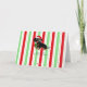Black and Tan Dachshund Santa Navidades tarjeta de vacaciones para dueños de Dachshund!! ¡¡Un adorable cachorro de Dachshund está masticando la Hoja Holly!! Rayas de Navidades rojas y verdes. Puede personalizar de texto. Diseño Personalizado de Dachshund negro y tan suave. Arte Perro único y divertido creado por Naomi Ochiai de Japón.