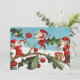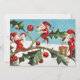 Tarjeta Festiva Navidades de Santa Elves pintando bayas en hojas