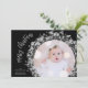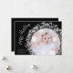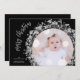 Estrellas, círculos y puntos plateados rodean tu foto favorita con tus nombres y Feliz Navidad con letras de moda en un fondo negro. **UTILIZAR UNA FOTO HORIZONTAL para obtener los mejores resultados o recortar tu foto a un cuadrado antes de subir. MÁS elementos de nuestra colección. Seleccione Matte para papel más pesado y alta definición para obtener la mejor calidad de impresión.