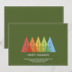 Navidades modernos y simples tarjetas de vacaciones con una fila de colores que se superponen en los gráficos de árbol de Navidad. Tipografía minimalista. Diseño simple y limpio. Todas las áreas de texto personalizables. Póngase en contacto para obtener ayuda para personalizar o personalizar sus deseos individuales. Felices fiestas!
