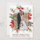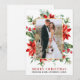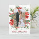 Elegante acuarela Poinsettia Floral Greenery Merry Boda de Navidad Foto recién casada Tarjeta de vacaciones incluye poinsettias rojas, hojas de eucalipto, conos de pino, agujas de pino, algodón, bayas y otras hermosas plantas botánicas de invierno. Marco dorado.