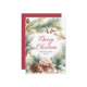 Moderna y elegante caligrafía Guión Watercolor Vegetación Botánica Navidades Wreath Tarjetas Navidades no fotográficas. Las tarjetas de vacaciones de este Navidad festivo cuentan con una corona acuarela con ramas de pino, bayas rojas y pinecones. Con un texto de saludo de "Feliz Navidad" escrito en un tipo de letra con letras a mano muy bien ventilado en rojo. En el fondo rojo del lado inverso con mensaje prefabricado. Estas tarjetas de Navidades personalizados son una excelente manera de recordar a sus seres queridos que están pensando en ellas esta temporada de vacaciones de invierno.