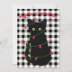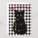 Tarjeta Festiva Navidades del gato negro Meowy luces de incandesce