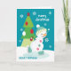 Envíe a un gran sobrino especial una tarjeta de Navidades divertida y colorida con un feliz hombre de nieve patinando sobre hielo con un colorido árbol de Navidad y copos de nieve sobre un fondo turquesa. Hombre de nieve, cortesía de Bonito Grafik.