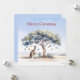 Un canguro Navidad, Koalas y un platypus sentados debajo de un árbol de goma decorado con azulejos. Feliz saludo de Navidad al frente Feliz Navidad y Feliz Año Nuevo dentro