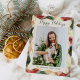 Una cédula de festividad con un diseño de fondo con motivos para una alegre e intemporal apariencia de temporada. Nota: Puede utilizar la herramienta Recorte para ajustar la colocación de fotos.