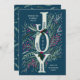 Navidades Joy Hand Drawn Foliage en las tarjetas de vacaciones azul Mint Green & Navy - con mi original obra de arte de hojas botánicas verdes, bayas rojas borgoñas y ramas de pino rodeando el adorable texto decorativo JOY con letras a mano. La parte trasera de la tarjeta tiene un patrón de bonito de brotes de pino verdes y tallos botánicos verdes de la flor menta. El saludo dice "Te deseo unas vacaciones llenas de alegría" de tu apellido familiar. Agrega un año en el centro de O y estás listo para enviar estas tarjetas de vacaciones únicas a tus familiares, amigos y seres queridos. Elija cualquier color de fondo para el diseño mostrado en Azul marino. ¡Artístico, hermoso y único para las vacaciones! Estas tarjetas de vacaciones no fotográficas también funcionan para que las empresas las envíen a empleados, clientes, clientes y compañeros de trabajo, simplemente cambian el nombre de la familia por el de su empresa o empresa. Pintura original de Lulubell Paperie