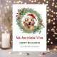 Funny tarjeta de Navidades de juego de palabras de perro, con el lindo Golden Retriever usando el gorra de Santa, llegando a su punto máximo de una corona de Navidades. Añade tu foto en la parte posterior. Todo el texto es editable. Puede quitar el marco rayado del lado posterior.