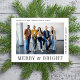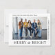 Tarjeta de vacaciones minimalista y moderna para Navidades en su empresa, con una foto de su equipo corporativo y "Merry & Bright" en tipografía elegante. Personalice el nombre de su empresa y el mensaje de agradecimiento cliente/cliente en una tipografía simple.