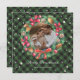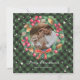 Elegante tarjeta de Navidades de fotografía verde con una foto dentro de una corona de Navidades de acuarela. Personaliza fácilmente esta tarjeta de Navidades de fotos con trenzas de búfalo con tu foto y el nombre de la familia.