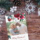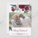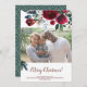Rústica tarjeta fotográfica de familia de vacaciones de invierno (paisaje) con hermosos Navidades flores ramo en una tradicional paleta de color verde rojo burdeos y cazador de pinos.+++++++ Personalízalo con sus deseos, foto y firma!