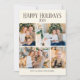 Moderna y elegante tarjeta de felicitación de vacaciones para Navidades de collage de 4 fotos. El texto dice "Felices fiestas". Personaliza con el año, tus fotos, nombre, dirección e incluso tu propio mensaje. Contáctame para obtener ayuda con tus personalizaciones o para solicitar productos adicionales de correspondencias o coordinación de Zazzle para tu temporada de vacaciones.